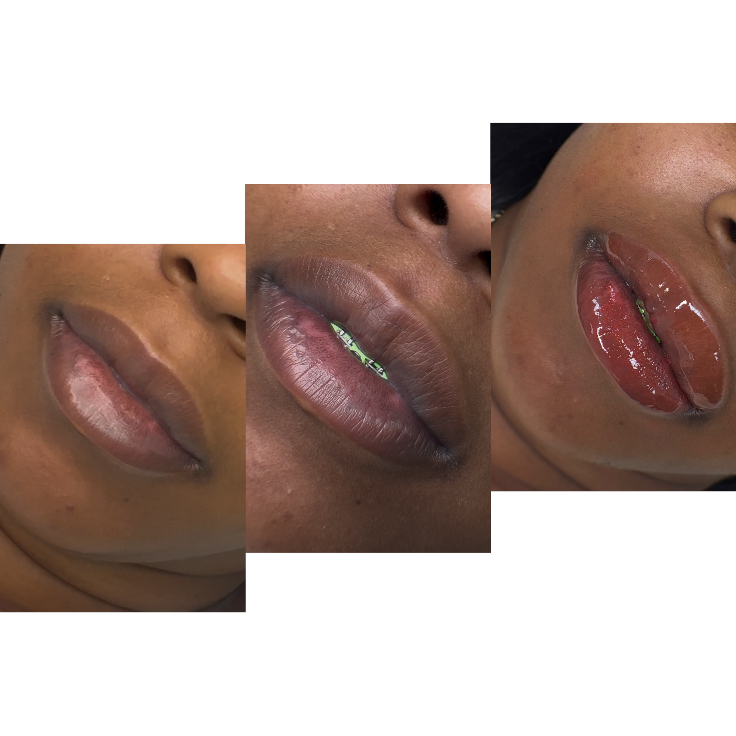 A semi-permanent tattoo technique that uses custom pigments to enhance the natural color, shape, and definition of your lips. Ideal for achieving a soft, tinted look with added symmetry and fullness.